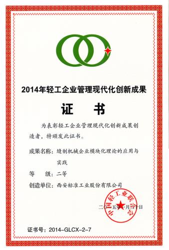 ??? 近日,在中國輕工業(yè)聯(lián)合會三屆五次理事會上,公司兩項成果獲得表彰?!癎C5000智能模塊化厚料平縫機(jī)”獲科學(xué)技術(shù)進(jìn)步一等獎;“縫制機(jī)械企業(yè)模塊化理論的應(yīng)用和實踐”獲管理現(xiàn)代化創(chuàng)新成果二等獎。