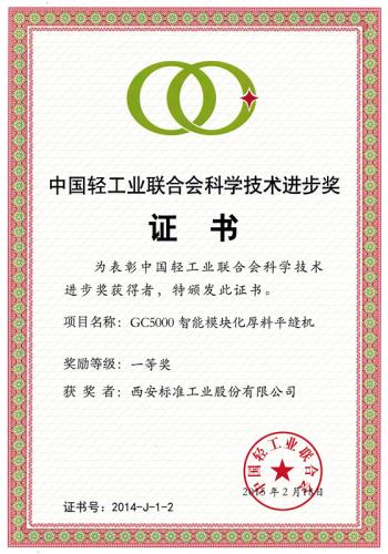 公司智能模塊化厚料平縫機(jī)獲得輕工聯(lián)科學(xué)技術(shù)進(jìn)步一等獎