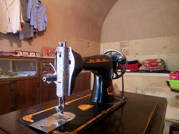 一號(hào)知青舊居的一間窯洞里,一臺(tái)老式縫紉機(jī)驀然闖入視線:黑亮的機(jī)頭看起來(lái)依舊嶄新,上面醒目的“東方紅”標(biāo)志,穿越了40多年的歲月,依舊熠熠閃光。