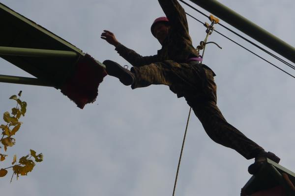 ??? “沒有經(jīng)歷,不要告訴自己――我不行。”這是參加完室外拓展科目高空項(xiàng)目“空中跨越斷橋”后,大家的普遍感受。獨(dú)自一人爬上8米高空,站在一塊30厘米寬、微微晃動(dòng)的木板上,然后跳過1.2米寬的斷板。大家都體會(huì)到高空斷橋是對(duì)自己心理的考驗(yàn),其實(shí)并不難,只要勇敢地邁出了第一步,成功就近在咫尺。在依次進(jìn)行的“平步青云”、“翻山越嶺”、“鋼絲競(jìng)技”、“同心鞋”、“大擺船”、“畢業(yè)墻”等科目中,大家對(duì)團(tuán)隊(duì)的認(rèn)同感、歸屬感和榮譽(yù)感越發(fā)強(qiáng)烈。從失敗中逐漸學(xué)會(huì)了如何分解目標(biāo)、如何合理分工、如何增強(qiáng)團(tuán)隊(duì)執(zhí)行力、如何萬眾一心,配合默契。
